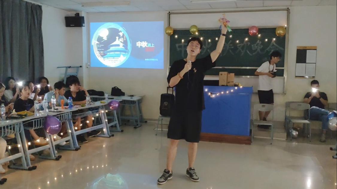 主持人见活动到了高潮,便临时插入了一项活动——“击鼓传花”,随着歌声的响起,代表着鲜花的物件在同学们的手中飞快的传递着,歌声停了5次,最终分别传到了刘三浩、刘昭超、王梓良、周秋炎、刘旭晗这五位同学的手中,这几位同学也分别演唱了《一路向北》《水星记》《两只老虎》等曲目,晚会的气氛更加轻松愉快。