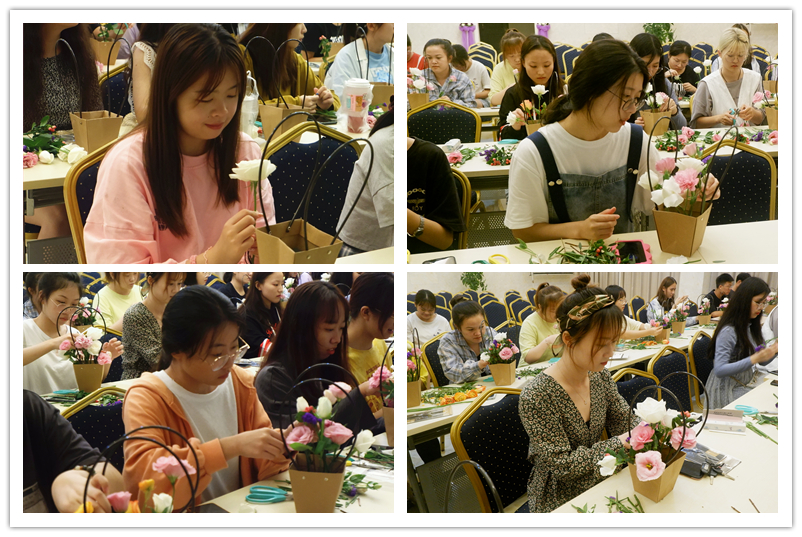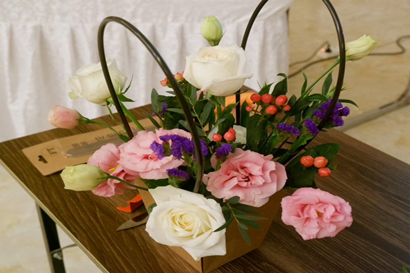 在最后的互动环节,学生们亲自动手,自行发挥,张南老师给予了指导并提出了意见和赞扬,她还鼓励学生们在插花的过程中表达心情与自我,带着对花艺的热爱,陶冶情操,丰富生活。在社会压力较大的情况下,学习生活之余,希望插花能给予学生们一种由内而外的安宁与恬静,让学生更好地去学习与生活。
