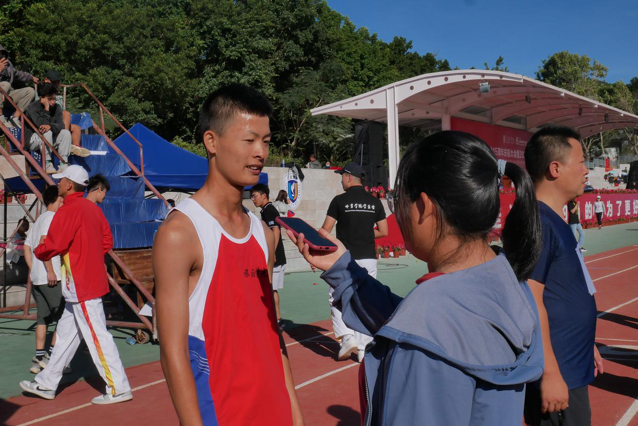 上午9时30分,随着一声震耳的枪声,学生组男子3000米决赛拉开了帷幕。运动员在赛道上争先恐后,勇往直前,引起赛场两旁观众惊呼,观众们为运动员加油呐喊,现场热火朝天。