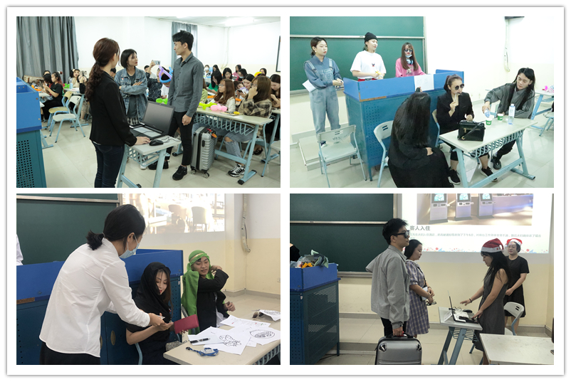 在本次结课表演中,七个小组围绕国际旅游管理信息智能化的主题分别为大家带来了呀诺达智慧电子门票体验之旅、中国国旅NC6系统、三亚艾迪逊酒店GXP系统调研、三亚金茂丽思卡尔顿酒店“酒店前台操作系统”调研报告、三亚鹿回头风景区——途咪智能导游系统、智慧AI/AR游园等创意情景剧。学生们将在课堂上学到的关于智能信息化的知识融入到情景剧中,并总结出了现今虽然人工智能的大量引入使从事服务业人员的就业率受到了一定影响,但服务业的发展仍然离不开人类。学生们用诙谐生动的方式展现了社会中智能化所缺失的东西,获得了现场老师和学生的喝彩。