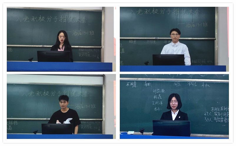 会议伊始,各班团支书向学生们宣布推优流程,详细介绍推优的章程和意义,并宣布候选者名单。随后,候选者们依序上台进行推优演讲。候选者们首先向学生们简单地介绍了自己,接着,他们向学生们讲述自己在上学期的工作经历和参加实践活动取得的成就和荣誉,他们既精彩又充实的学习生活赢得了全场学生的称赞与掌声,为学生们树立了好榜样。其次,候选者们阐述了自己的入党动机、入党准备以及他们积极向党组织靠拢的决心和思想觉悟,同时他们表示会为成为一名优秀的共产党员而不懈奋斗。学生们认真仔细地听着每一位候选者的推优宣言,感受他们对党的向往和热情,对服务人民的真诚和耐心,对自己的严格要求。