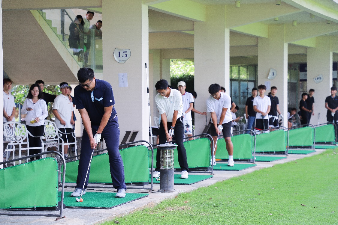 学生组挑战赛告一段落,紧随其后的是“教师组100码铁杆定点挑战赛”,此场比赛以100码精准计分,最接近100码旗杆者获胜。大部分教师对高尔夫球兴趣十足,经过在场高尔夫专业学生的短暂动作指导,也能挥杆打出完美的直球。从教师们积极参与高尔夫挑战赛中,学生们更加体会到了这个被誉为“时尚优雅的运动”的魅力。