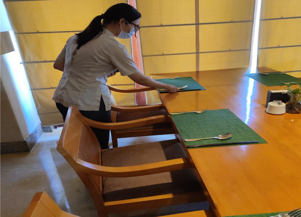 酒店2001班学生一行四人选择早班工作,作为临时服务员在酒店西餐厅为客人提供服务。早晨7点乘坐班车,领工作服,吃完早餐后8点准时上班。刚开始的时候我们对具体的工作不太熟练,只能进行简单的端盘工作,有很多工作细节需要领班多次提醒,指导学生们工作细节的正式员工都耐心十足,学生们为客人提供的服务也在努力做到细致入微。酒店服务的分毫都会影响客人对酒店的好感度,兼职工作让酒店班学生们对酒店的工作有了进一步的了解。