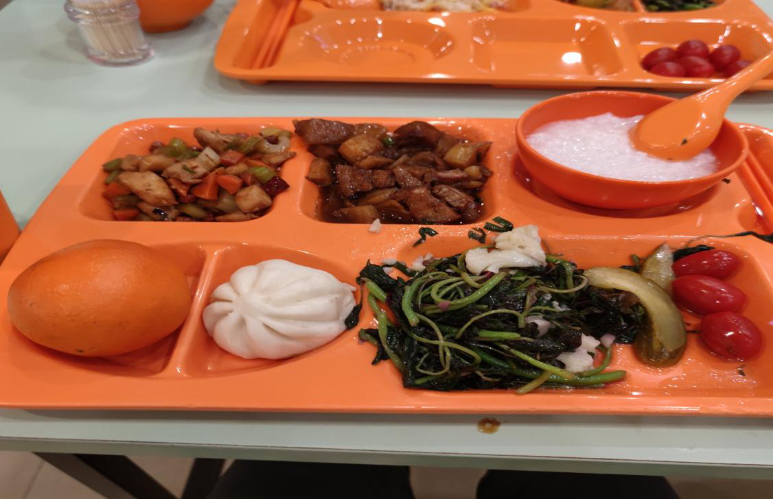 酒店一线部门的工作比较辛苦,早上等客人离开餐厅后的打扫,餐具的清洗等还有很大的工作量,一般需要工作到下午1点才能就餐。员工餐厅的饭菜色香味俱全,荤素搭配,菜品多样,还会提供新鲜水果,舒适的就餐环境能让员工的疲惫得到缓解。酒店不同职位的人可以通过衣服的颜色来判断,但在工作过程中可以看见不论是身着白衬衫还是蓝衬衫,即使是高层主管,也会和临时兼职工一起帮忙送餐,就餐的时候也能看见他们的身影,这也是让酒店班学生感触最深的地方,酒店工作人员齐心协力,无高低之分,只为将酒店工作做到最好。