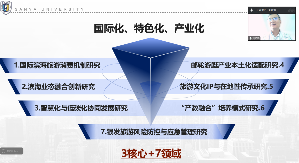 近日我院“嵌入式旅游与城市治理”科研团队成功举办暑期学术沙龙,围绕“海南自贸港背景下滨海旅游与休闲管理产教融合研究方向”这一主题展开深入研讨。本次沙龙特邀海南大学旅游学院刘海洋教授进行点评指导,亓元教授、陈扬乐教授及团队核心成员共同参与,就特色专业群建设、嵌入式旅游发展路径与跨学科融合创新进行了全面交流。