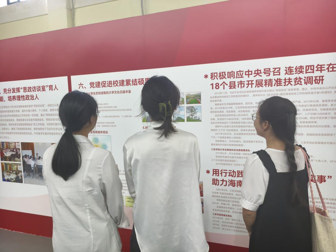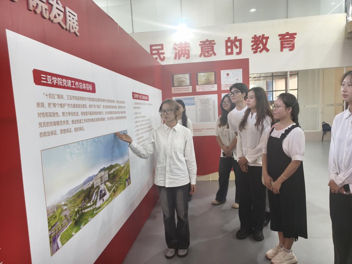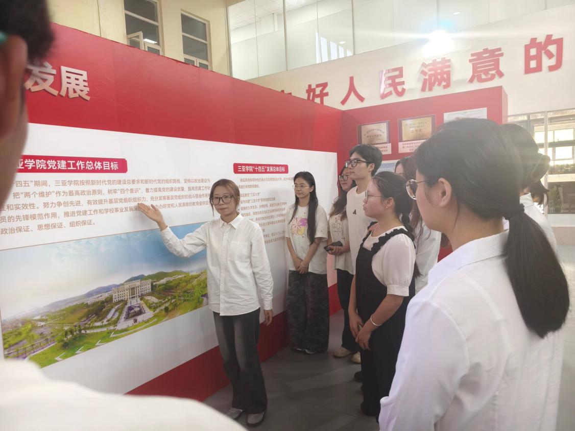 踏入展厅“不忘初心、砥砺前行,为党育人、为国育才”的主题醒目而庄重,瞬间吸引了发展对象们的目光。在党建讲解员的讲解和带领下我们了解到了三亚学院自2005年建校以来,始终将党建工作视为学校发展的核心驱动力,形成了“以党建促校建”的鲜明办学特色。通过党建与校务的深度融合,学校在治理机制、思想引领、教学实践等方面取得了显著成效。讲解员首先以“国家安全:青年的时代命题”为开篇。从革命年代隐蔽战线青年情报员“以青春护家国”的史料展陈,到新时代青年在网络安全、生态安全等领域攻坚的纪实资料,讲解员结合一张张老照片、一段段文字说明,拆解“国家安全并非遥远概念,而是青年触手可及的责任”的深层逻辑。