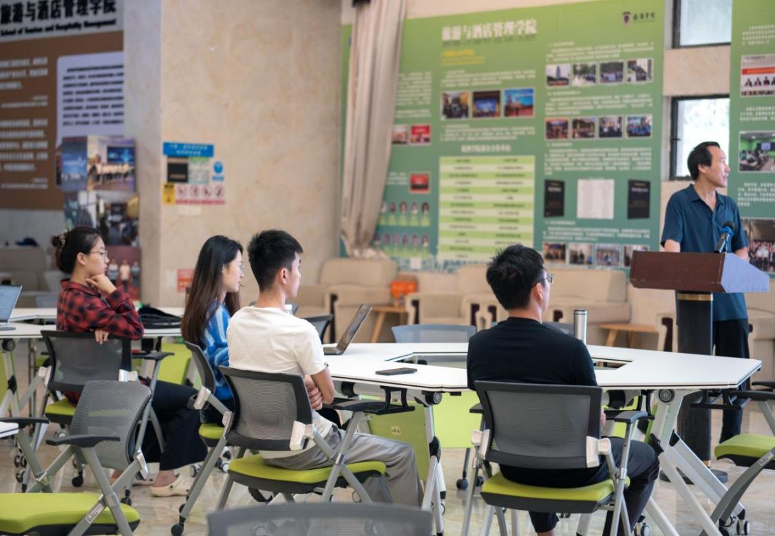2025年11月7日,张海峰教授在白鹭苑实训大厅举办了一场主题为“旅游竞争力:理论与方法”的学术讲座,与旅游管理专业本科的学生、部分MTA研究生分享了他对于旅游竞争力理论与方法的深刻见解,对于我院师生在区域旅游规划与发展研究方面具有重要的指导意义。