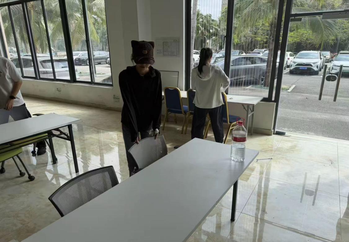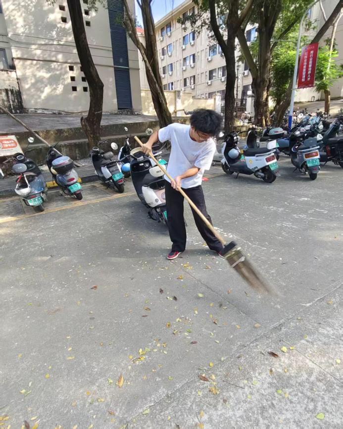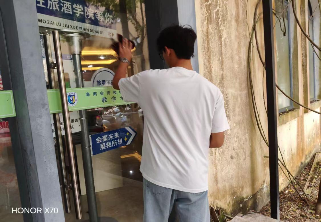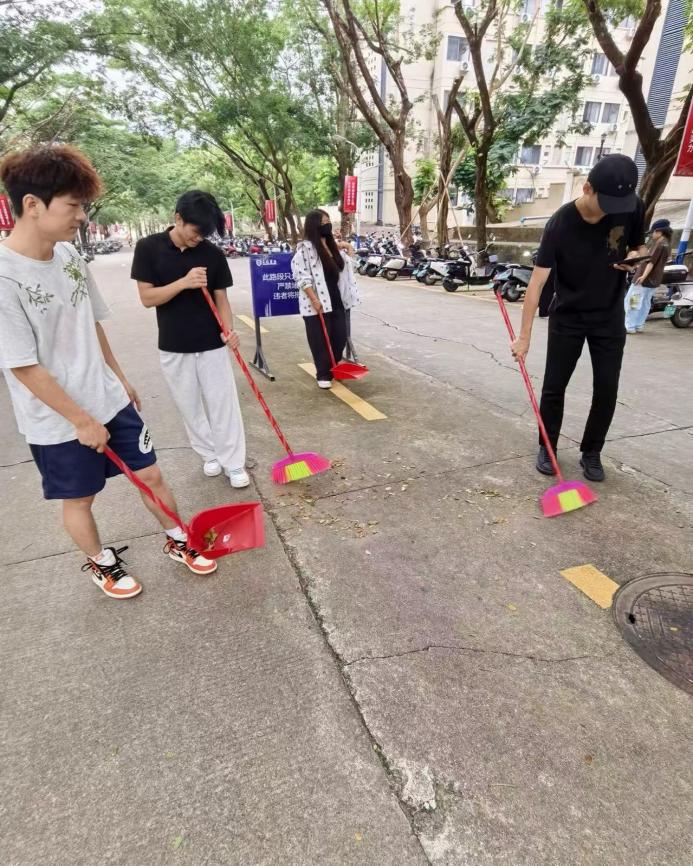 活动中,旅酒学子充分发挥专业优势,在实训大厅精准分工:细致擦拭桌椅与玻璃门窗、彻底清理桌面杂物,以酒店服务标准打磨每一处细节,不放过任何卫生死角,让实训空间更趋整洁明亮。校园公共区域内,学子们分组开展环境整治,清扫道路落叶、捡拾绿化带垃圾,细致清理卫生死角;针对电动车乱停乱放问题,有序将车辆规范至指定区域,全力维护校园通行秩序。