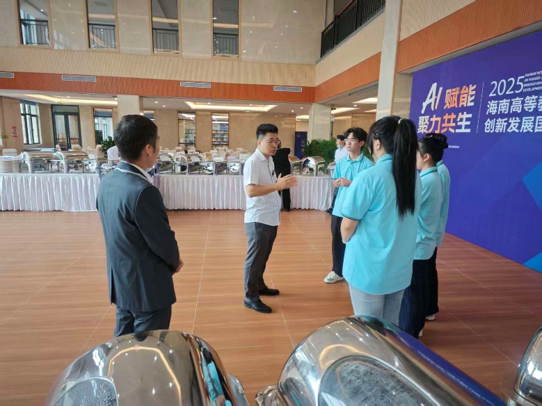 由吉利人才发展集团主办、芯位教育、三亚学院与正和岛联合承办的2025海南高等教育创新发展国际论坛于11月29日在三亚学院盛大启幕,大会以“AI赋能 聚力共生”为主题,聚集全球教育同仁、产业菁英、学术先锋。在这场国际盛会中,一支由三亚学院酒店管理专业师生组成的高素质服务团队,凭借专业的技能和热情的服务,成为了现场一道亮丽的风景线。