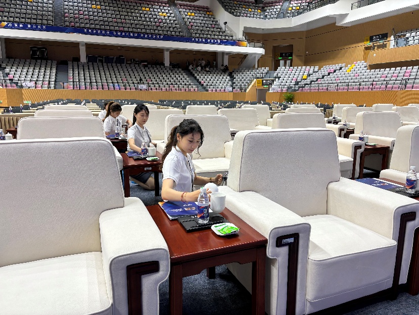 如果说接待是服务的入口,那么会场内的礼仪服务则是论坛精神风貌的直接体现。负责《酒店接待礼仪》课程的王婕霏老师带领来自各学院及专业的18位学生志愿者团队负责本次论坛内场礼仪与接待。