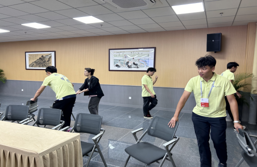 酒店后勤保障组(由魏铭宣老师协同指导):结合《高尔夫俱乐部管理》中的高端客户服务与设施运营知识,该组学生与酒店管理专业团队无缝协作,参与到嘉宾用餐服务,场地设施摆放等工作中。他们展现了高尔夫专业所强调的“细致入微的服务精神”和“预见性管理思维”。
