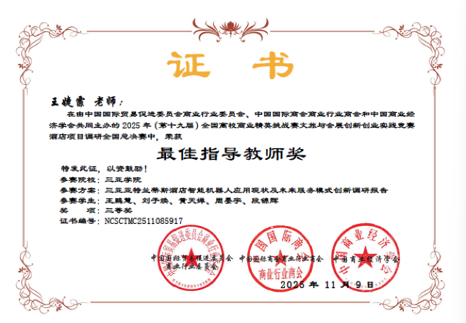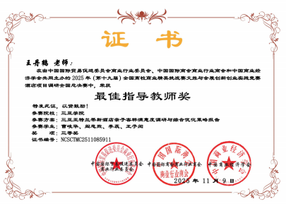 酒店管理专业多名教师荣获最佳指导教师荣誉证书