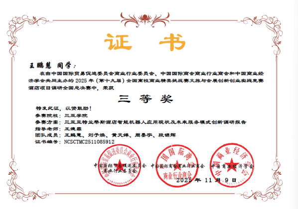 王婕霏、王丹鹤两位老师指导的团队聚焦酒店行业调研与策划,分别围绕高端度假酒店的服务创新、智能机器人应用、亲子客群满意度等课题展开深入研究。学生在教师指导下完成从调研设计、数据收集到策略提出的全过程,不仅提升了专业调研能力,更强化了对行业发展趋势的洞察力与策划执行力。这些成果充分说明,专业课程与竞赛实践的有机结合,能够有效推动学生从理论认知向实践应用跨越。