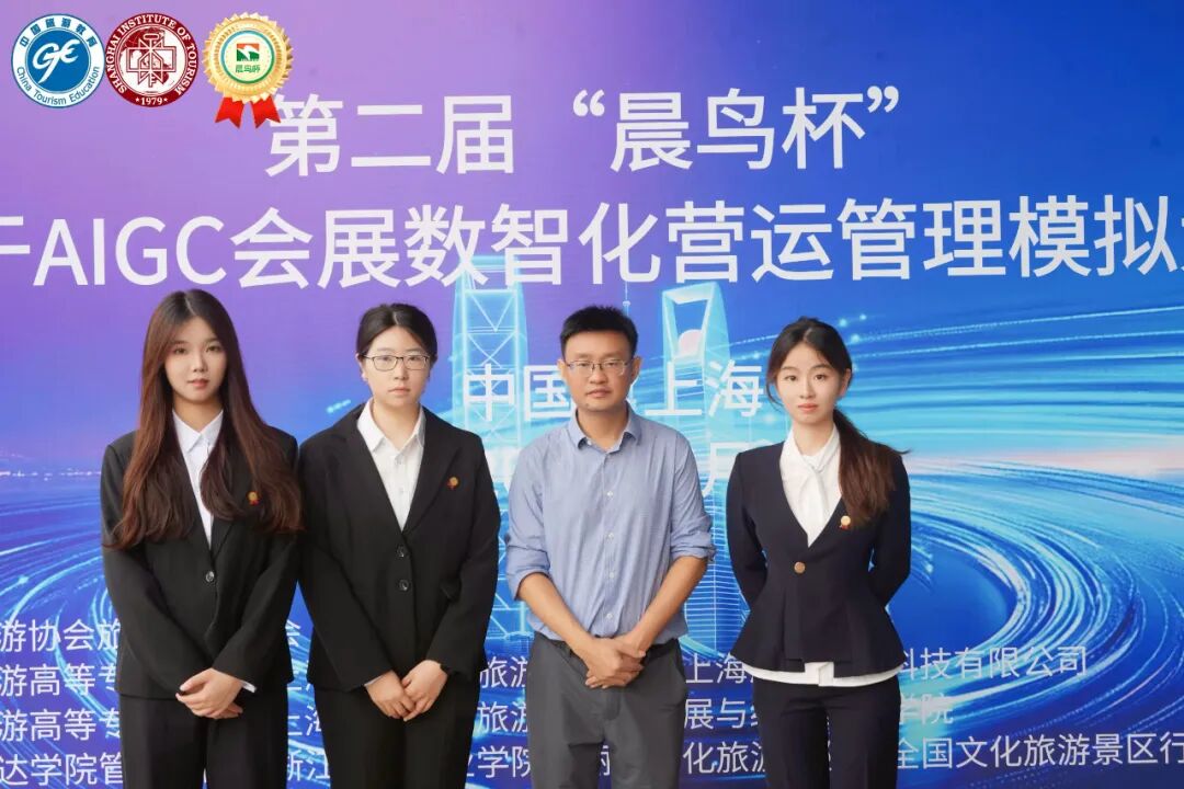 2025年第二届“晨鸟杯”全国基于AIGC会展数智化运营管理模拟大赛在上海圆满落幕。经过全国百余所院校的激烈角逐,旅游与酒店管理学院会展专业师生团队凭借创新性的数智化解决方案与出色的实战表现,以“AI驱动的智慧会展生态平台”为参赛项目,创新性地将AIGC技术应用于会展全流程:从智能展位设计、虚拟客服交互到客流预测与绿色碳足迹管理,斩获本科组一等奖。