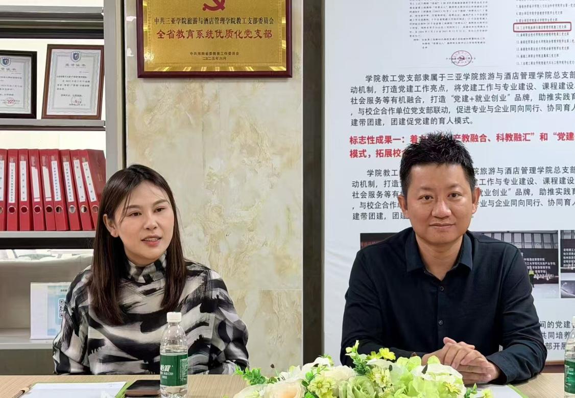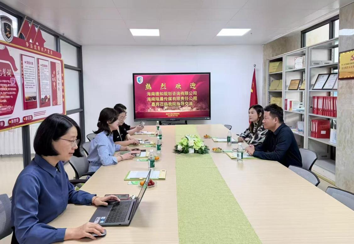 为积极响应文旅产业数字化发展趋势,深化产教融合、校企合作,搭建校园与企业间的人才输送桥梁,近日,海南德知规划咨询有限公司总经理陈卡雷、海南瑞晨传媒有限责任公司总经理鄂松美一行到访旅酒学院,就酒旅新媒体运营项目制合作事宜展开深度交流洽谈。旅酒学院李慧院长、赵晓乐书记、王秋娜副主任、张倩老师、荆耀霆老师出席本次会议,校企双方围绕课程共建、人才培养、实习就业等合作方向达成诸多共识。